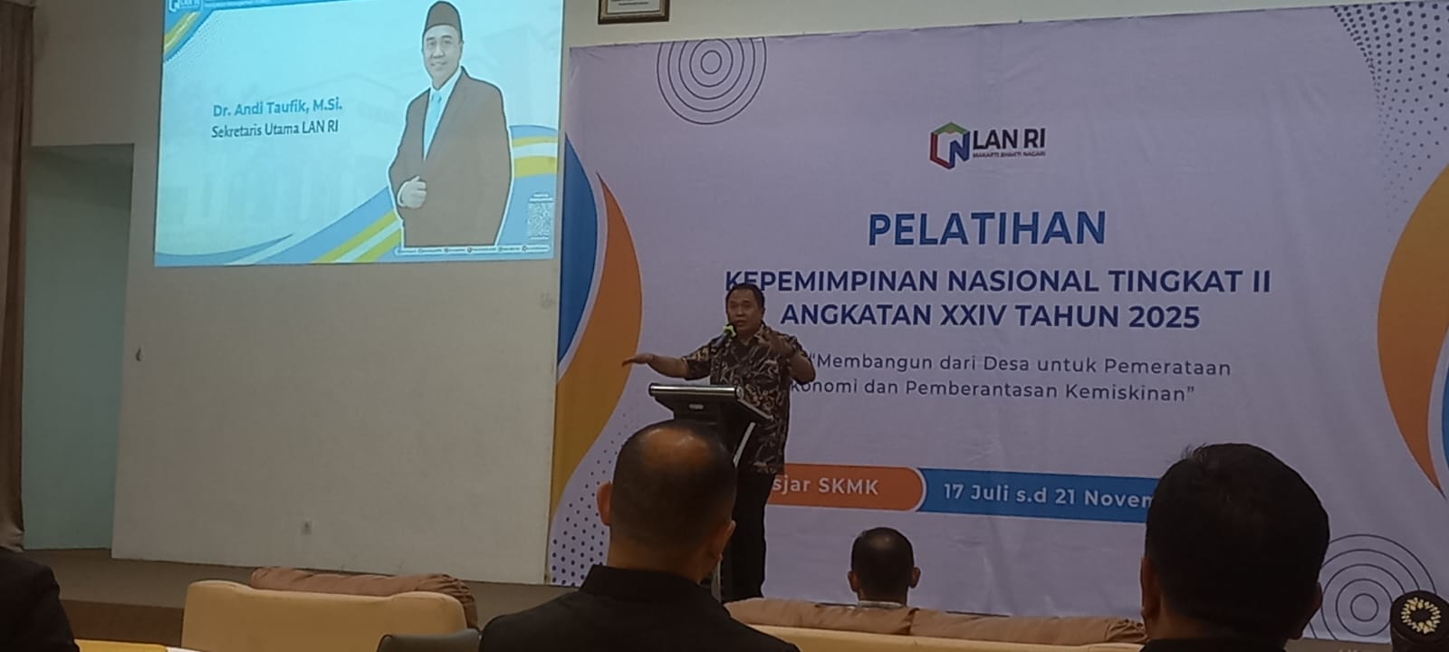 Kepala DPMG mengikuti kegiatan pembekalan yang disampaikan oleh Bapak Sekretaris LAN Pusat bertempat di Aula Pusjar LAN Aceh pada tanggal 18 November 2025. Kegiatan ini berlangsung dengan tertib dan penuh antusiasme, serta menjadi sarana penting dalam meningkatkan wawasan dan kapasitas aparatur, khususnya dalam mendukung upaya peningkatan tata kelola pemerintahan di daerah.